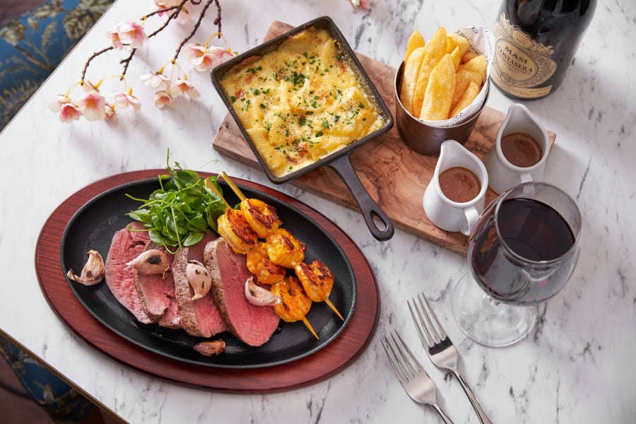 Indulge in the ultimate feast with our 16oz centre-cut fillet steak, perfectly carved and paired with garlic king prawns. Served with truffle & parmesan fries, tenderstem broccoli in chilli butter, and your choice of sauce, this luxurious platter is perfect for sharing.